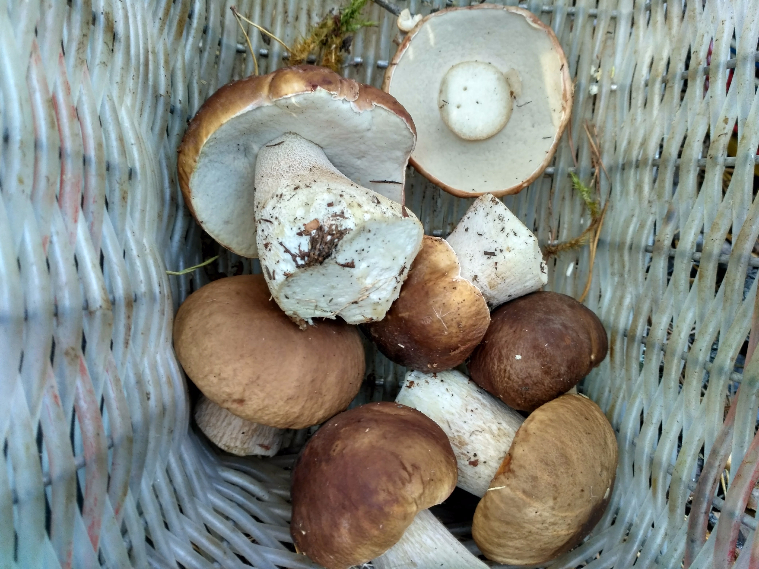 Ну и в заключении подведу итог: За 2 дня набрали по 6 корзин на двоих. В общей сложности пройдено около 10 км. Такое ощущение, что грибы только начинают вылазить. Много червивых. Старался выбирать лес без травы. Основная масса боровиков и белых растет на горках обросших мхом. Погодка порадовала. По солнцу очень просто ориентироваться в лесу — это помогало зайти подальше в глубь.